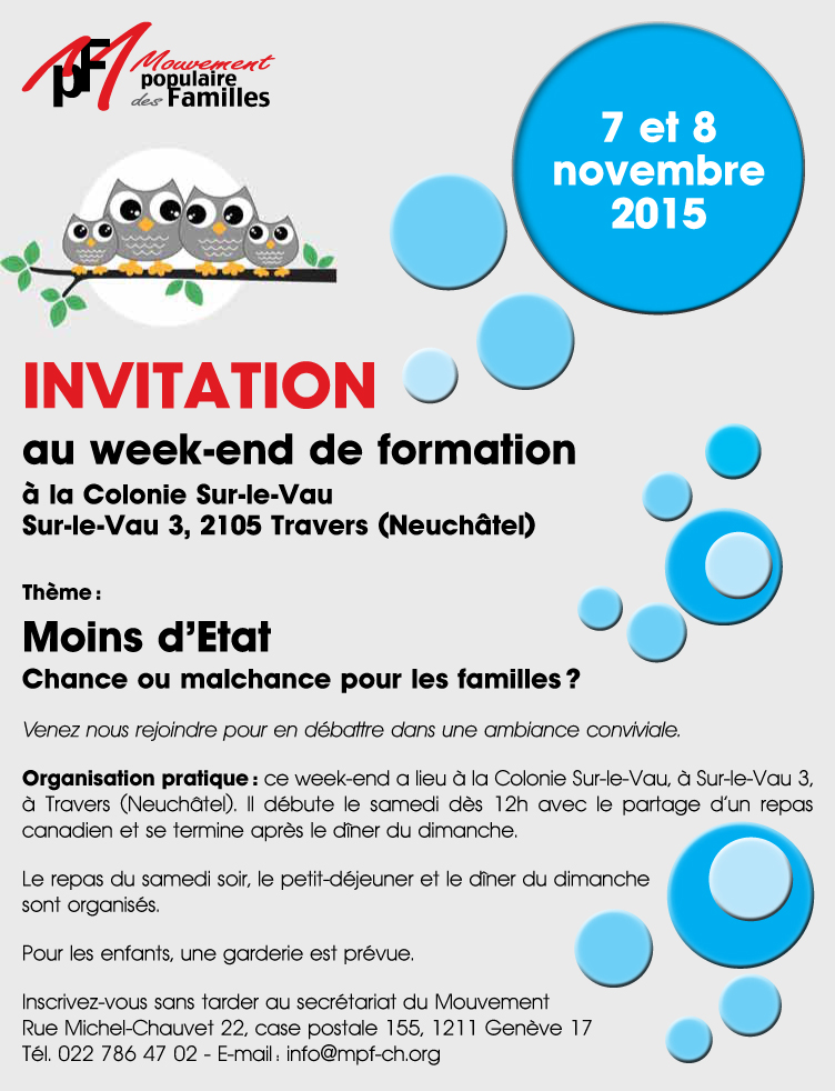 Week-end de formation organisé par le Mouvement Populaire des Familles. Plus de détails…