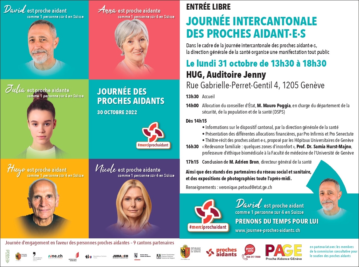 Lundi 31 octobre 2022 a eu lieu une conférence publique aux HUG organisée par la Direction générale de la santé dans le cadre de la « Journée intercantonale des proches aidant-e-s ».