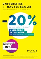 - -20% sur tous les livres de cours* du 11 septembre au 29 octobre.